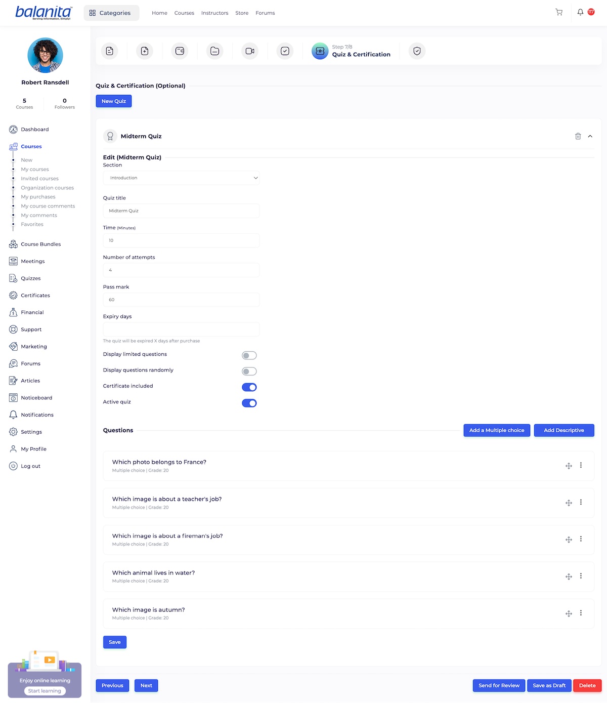 Step 7 – Quiz and certification: